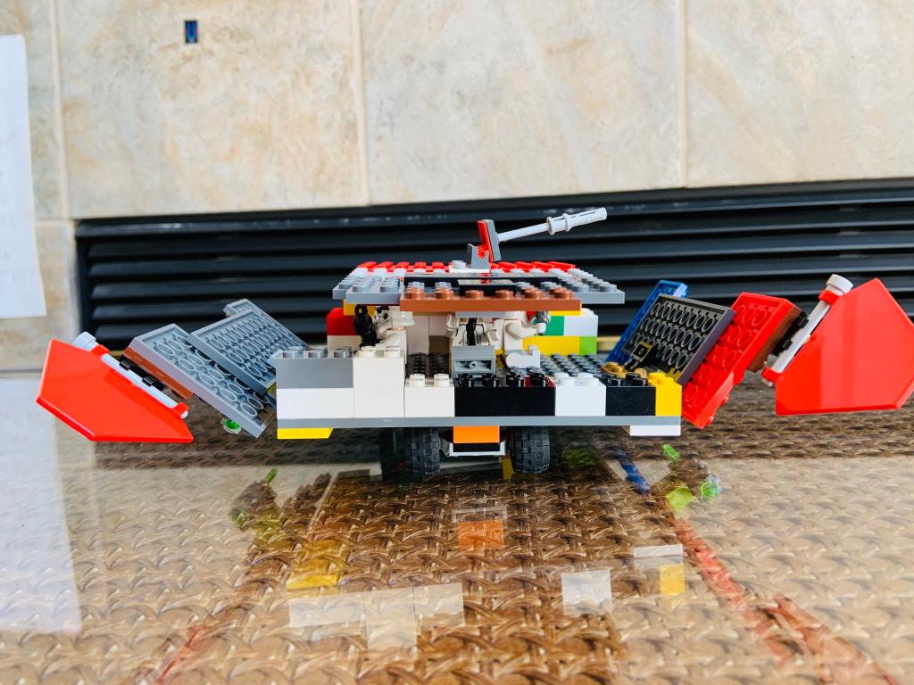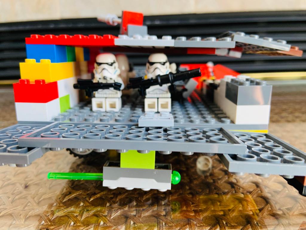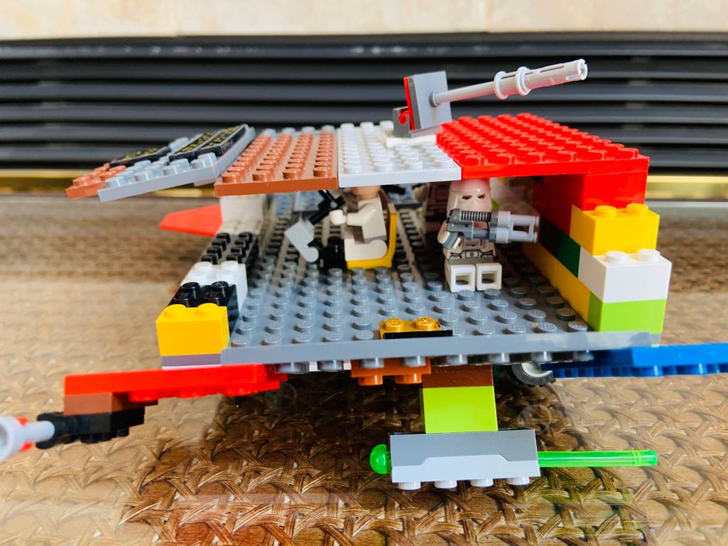 My version does not look exactly like the UT-AT but it’s pretty close. This build was kind of hard for me because for the base of the transport I had to find a medium LEGO baseplate and I don’t have a lot in my LEGO bucket. Finally the end result was really cool in my opinion! The features on my version are quite similar to the UT-AT’s. It has a swivel cannon on the top, missile firing cannons on the sides that actually fire missiles, both sides of the transport are openable and closable, the front is also openable and closable, wheels on the bottom that make the transport move!, a good interior which can hold quite a lot of LEGO minifigures, and finally a driver’s seat with a handle to control the transport. I was really proud of the end result and happy that my MOC has a lot of movable parts. A kid can actually play with it!