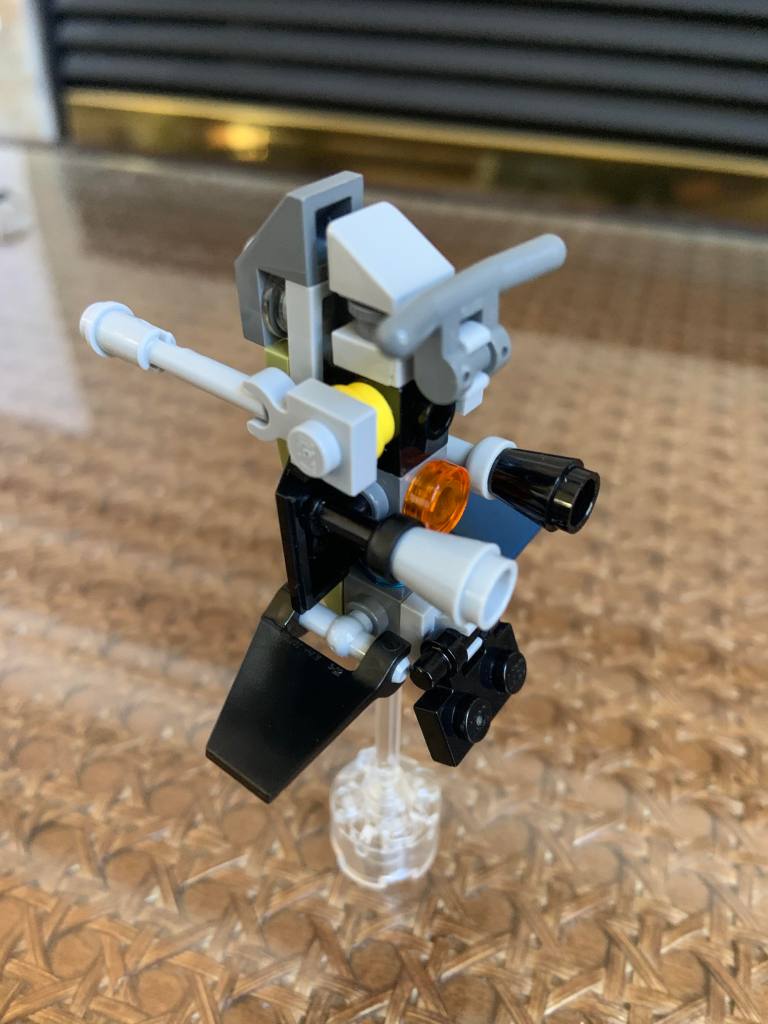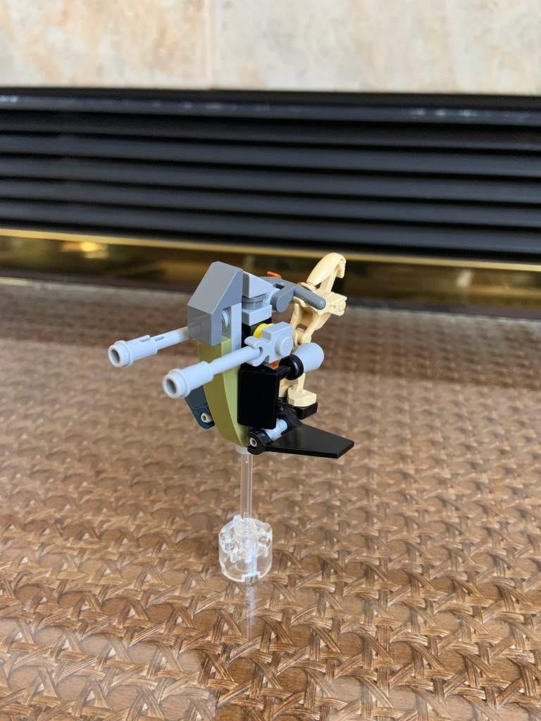 This is one of the simplest LEGO Star Wars MOCS ever (in my opinion, could be the GONK droid too). But I thought the droid STAP looked cool, like a stand-up speeder. So I decided to make one. With very simple LEGO pieces I made my own droid STAP in under 5 minutes. It features an adjustable stand protruding from the speeder where a minifigure or battle droid can stand on, on the top are handles which a minifigure or battle droid can clip their hands on so the speeder looks like it is being piloted, a smooth overall look, complete with two side engines and flaps. Finally on the top is a smooth look and two laser cannons. This build was very short and since it was so small and easy to build I might work on a tutorial video on this in my YouTube channel!